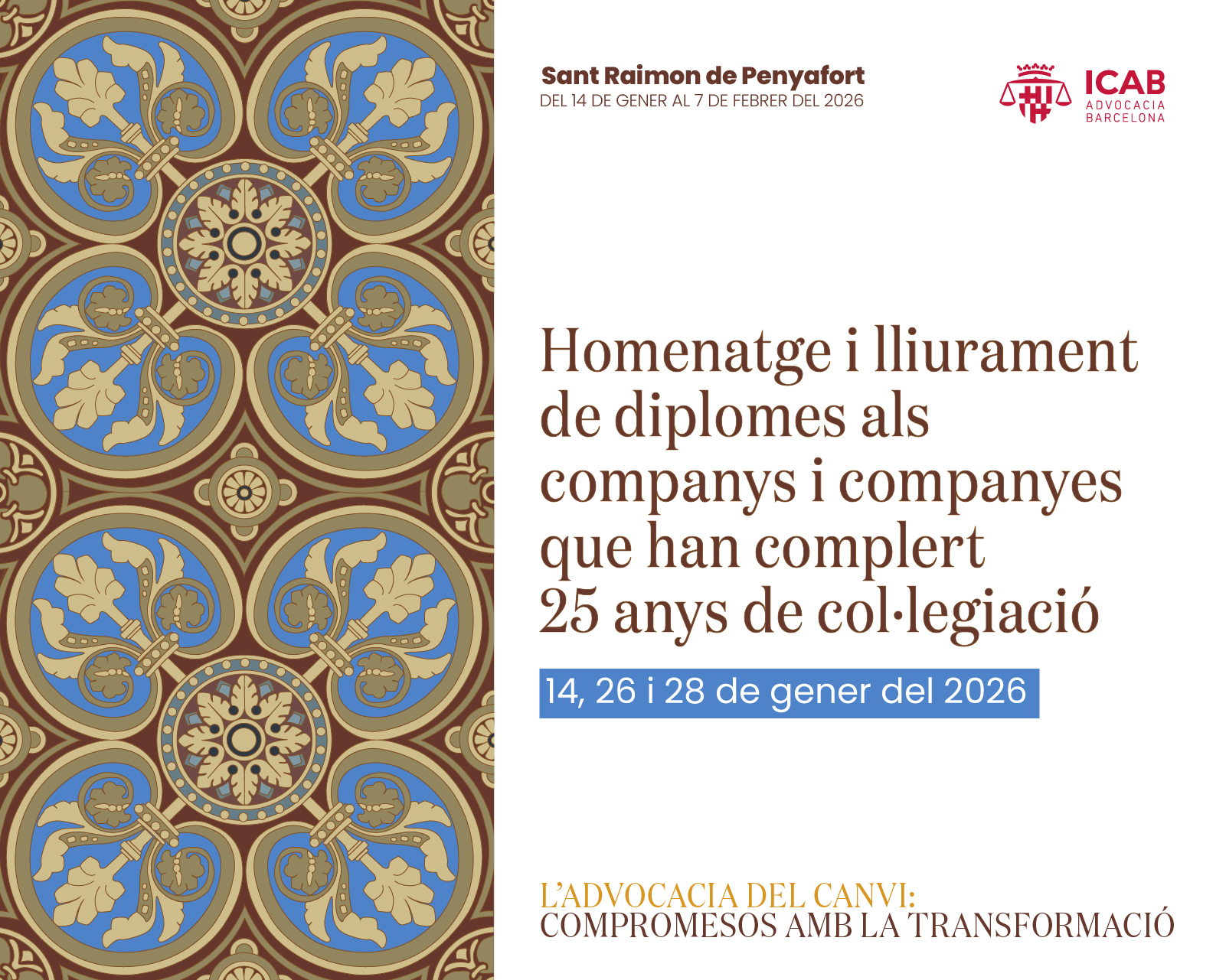 Actes del dia | Sant Raimon de Penyafort | Protocol#SantRaimon26: Homenatge i lliurament de diplomes a les persones col·legiades que han complert 25 anys de col·legiació (A-F)