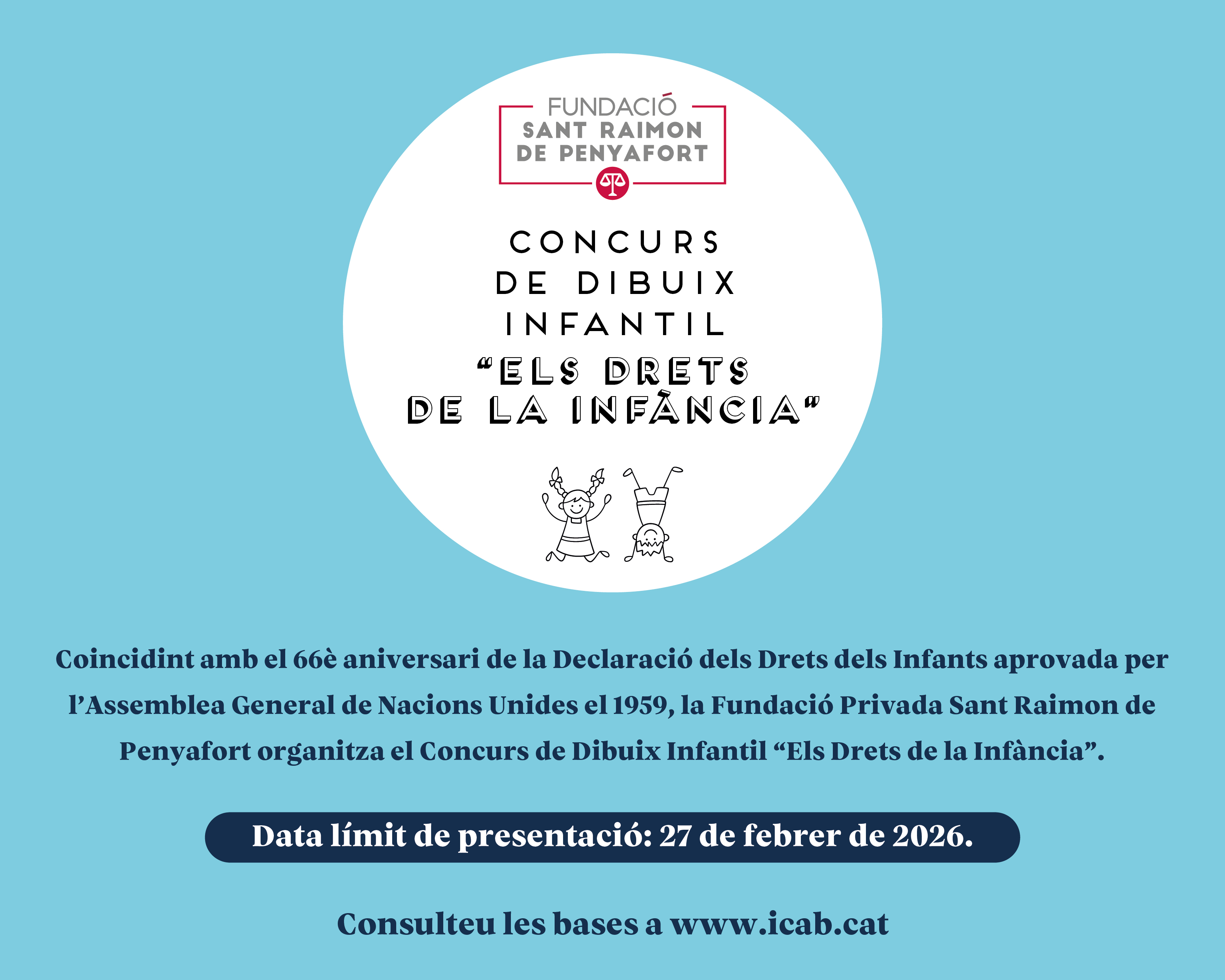 Coincidint amb el 66è aniversari de la Declaració dels Drets dels Infants aprovada per l’As-semblea General de Nacions Unides el 1959, la Fundació Privada Sant Raimon de Penyafort organitza el Concurs de Dibuix Infantil “Els Drets de la Infància”,