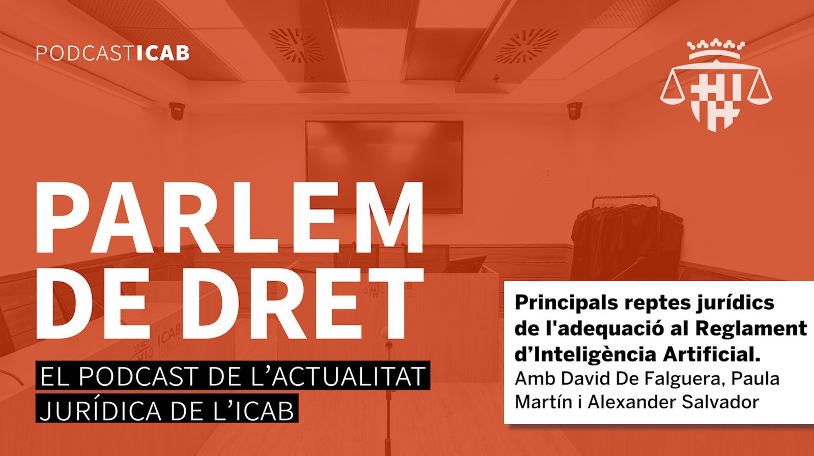 La Sala de Vistes de l’ICAB acull un nou capítol del pòdcast en què conversem des de la Sala de Vistes de l'ICAB sobre una qüestió de gran actualitat com és el Reglament d’Intel·ligència Artificial.
