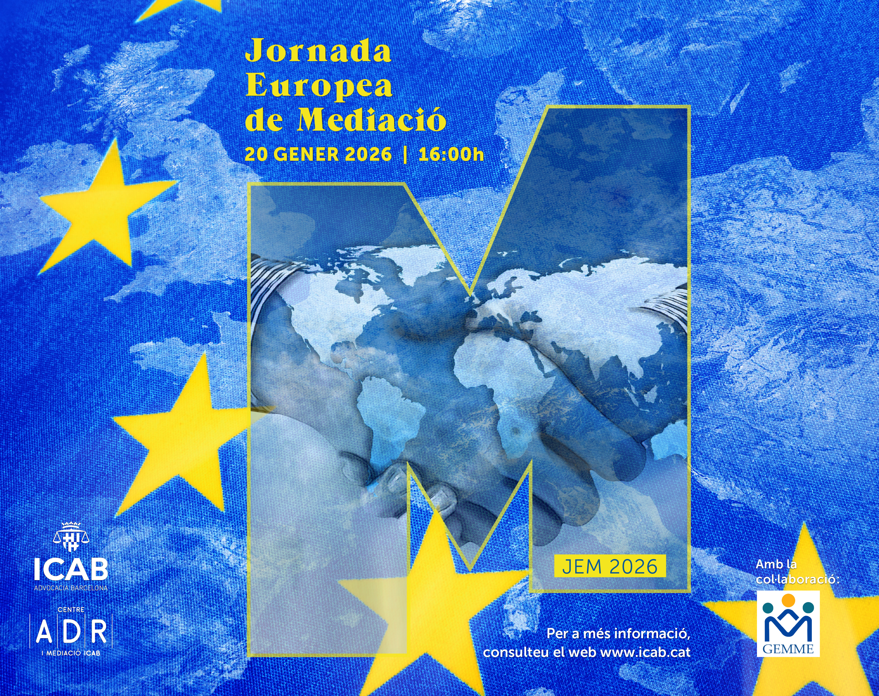 El Col·legi de l’Advocacia de Barcelona (ICAB) celebra el dimarts, 20 de gener de 2026, la ‘Jornada Europea de la Mediació 2026’, per tractar els reptes que planteja la mediació davant els nous escenaris que han sorgit arran de la Llei Orgànica de mesures en matèria de eficiència del Servei Públic de Justícia 1/2025.