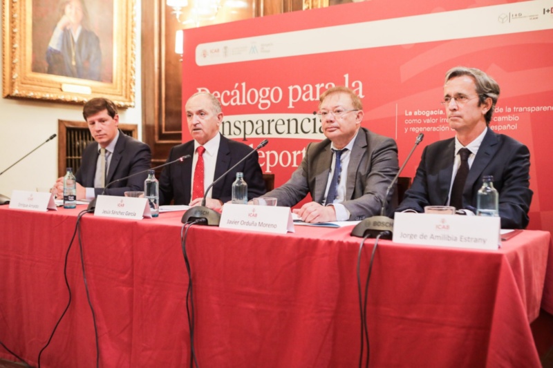 Durant la seva intervenció el degà de l'advocacia barcelonina, Jesús M. Sánchez, ha destacat el treball conjunt realitzat pels Col·legis de l'Advocacia de Barcelona, Madrid i Màlaga, aquests dos darrers encapçalats per Eugenio Ribón i per Salvador González, respectivament, per elaborar aquest decàleg a través dels seus instituts de recerca i innovació jurídica. Sánchez ha afirmat que “la ciutadania té dret a conèixer i disposar de la informació que regeixen les institucions, més enllà de l'Administració de Justícia, i per això considera que la transparència ha de ser un valor essencial que regenti el funcionament de la nostra societat”.