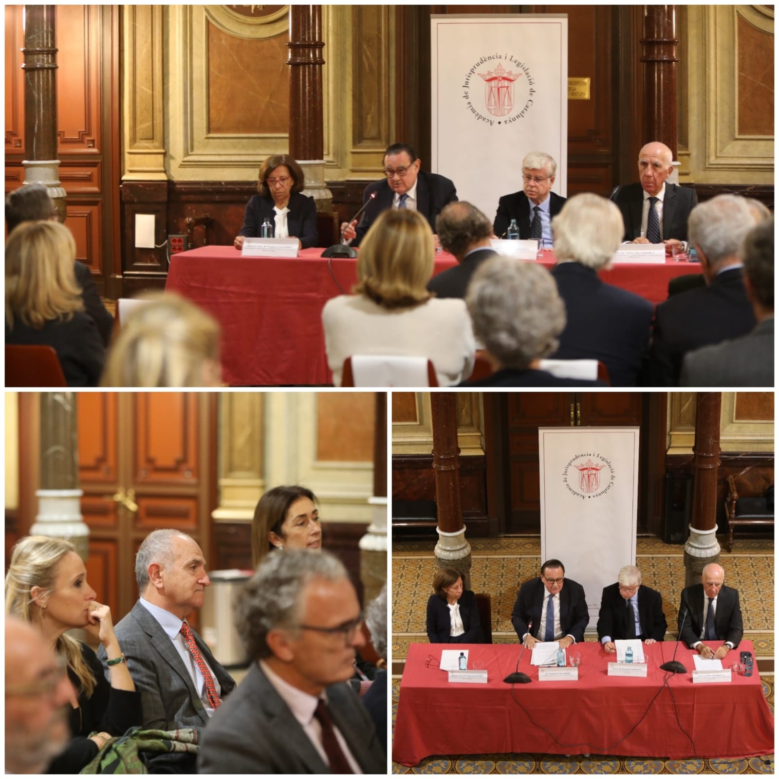 L’Acadèmia de Jurisprudència i Legislació de Catalunya ha celebrat aquest dimecres, 8 de novembre de 2023, una exclusiva sessió oberta a la qual ha convidat un grup reduït de juristes de prestigi per tractar temes d’interès i d’actualitat jurídica, en forma de ponència i col·loqui.