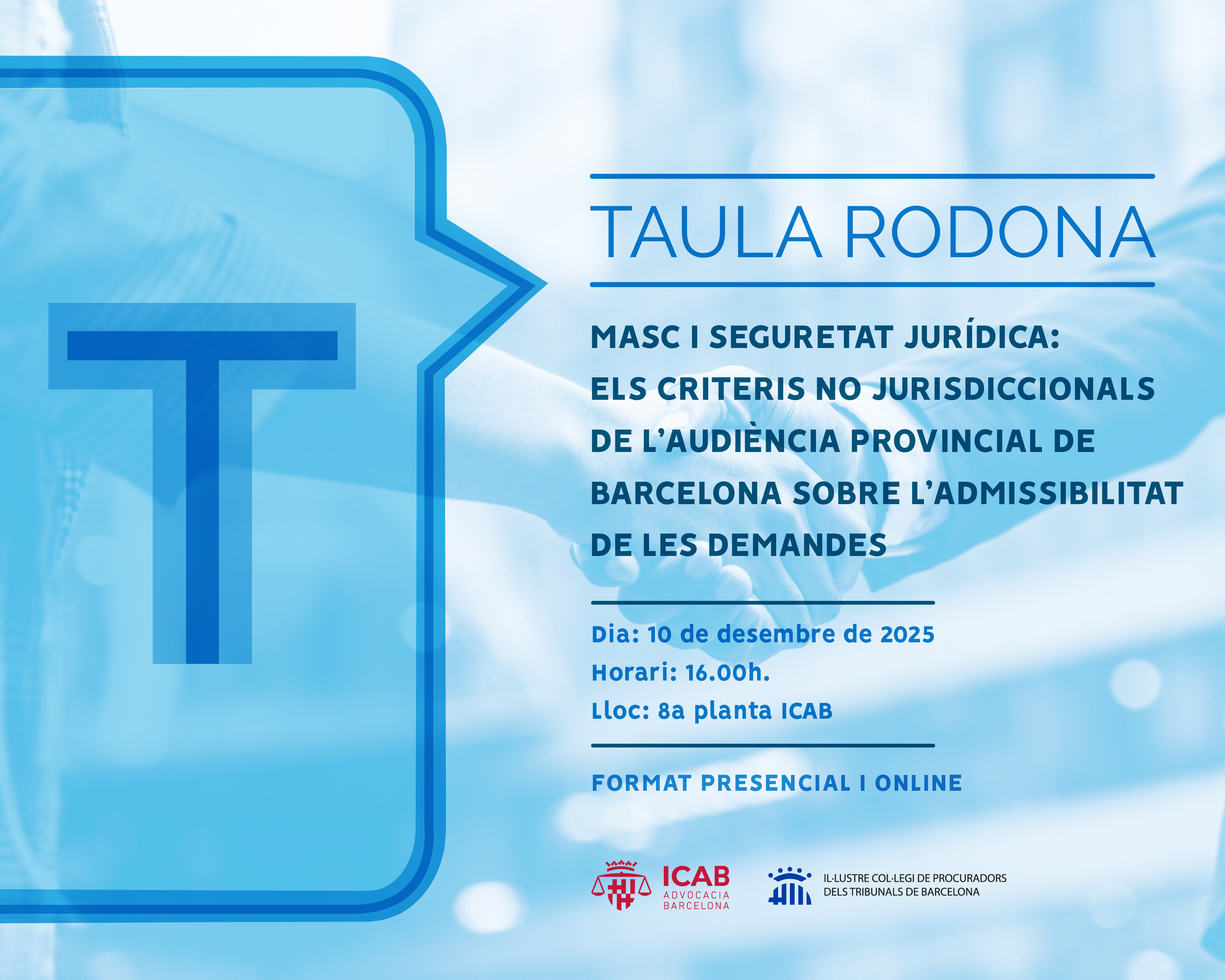 Taula rodona: MASC i seguretat jurídica. Els criteris no jurisdiccionals de l'Audiència Provincial de Barcelona sobre l'admissibilitat de les demandes