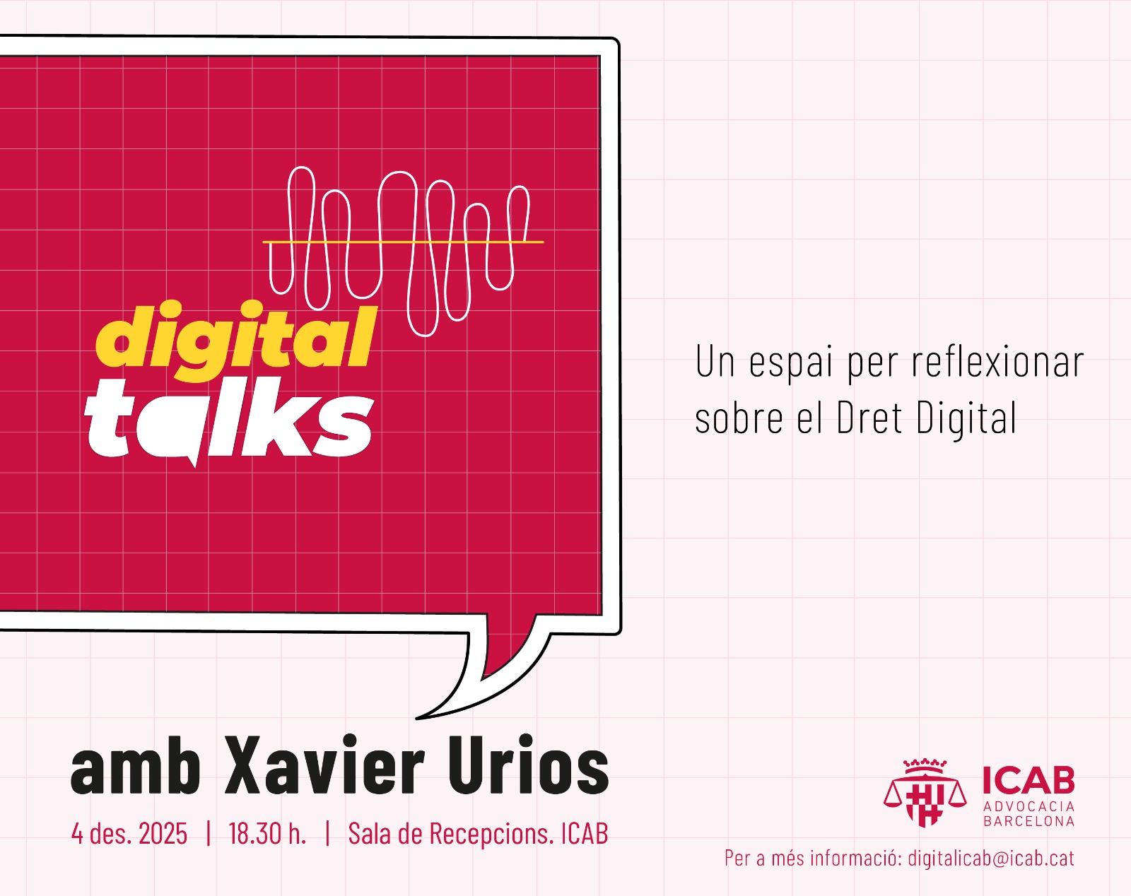 El próximo jueves 4 de diciembre de 2025, a las 18.30 h, tendrá lugar el primer Digital Talks, que en esta ocasión contará con la participación de Xavier Urios, jefe de la Asesoría Jurídica de la Autoridad Catalana de Protección de Datos (APDCAT).