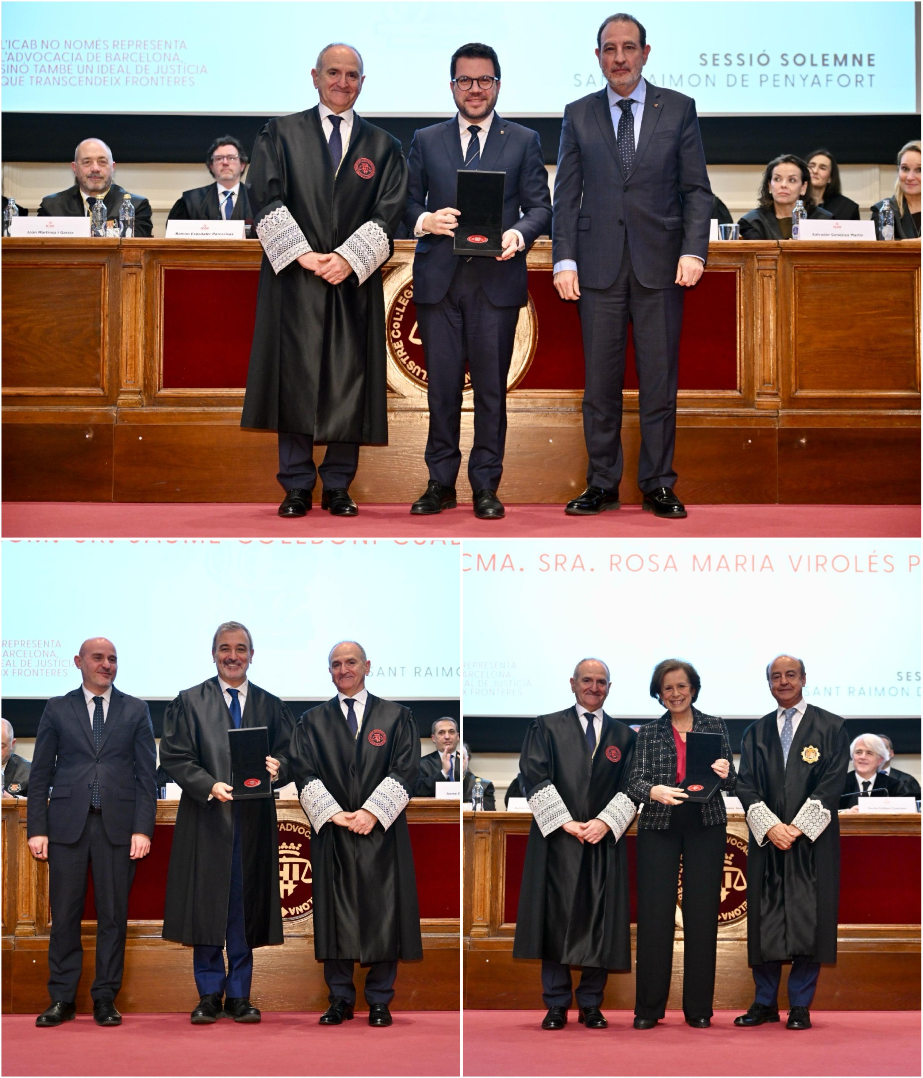 El ICAB entrega el título de colegiado/a de honor de la institución a Pere Aragonès, Jaume Collboni y Rosa Maria Virolés en el marco de la Sesión Solemne que se celebra con motivo de Sant Raimon de Penyafort