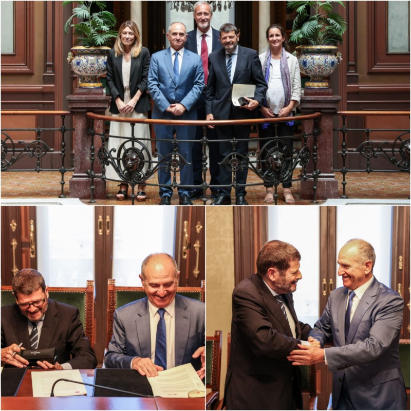 El decano del Colegio de la Abogacía de Barcelona, Jesús M. Sánchez, y el teniente de alcalde del Área de Prevención, Seguridad, Convivencia y Régimen Interior del Ayuntamiento de Barcelona, Albert Batlle, han firmado un convenio para ratificar el acuerdo entre ambas Instituciones para la realización de un programa piloto de justicia restaurativa en Barcelona.