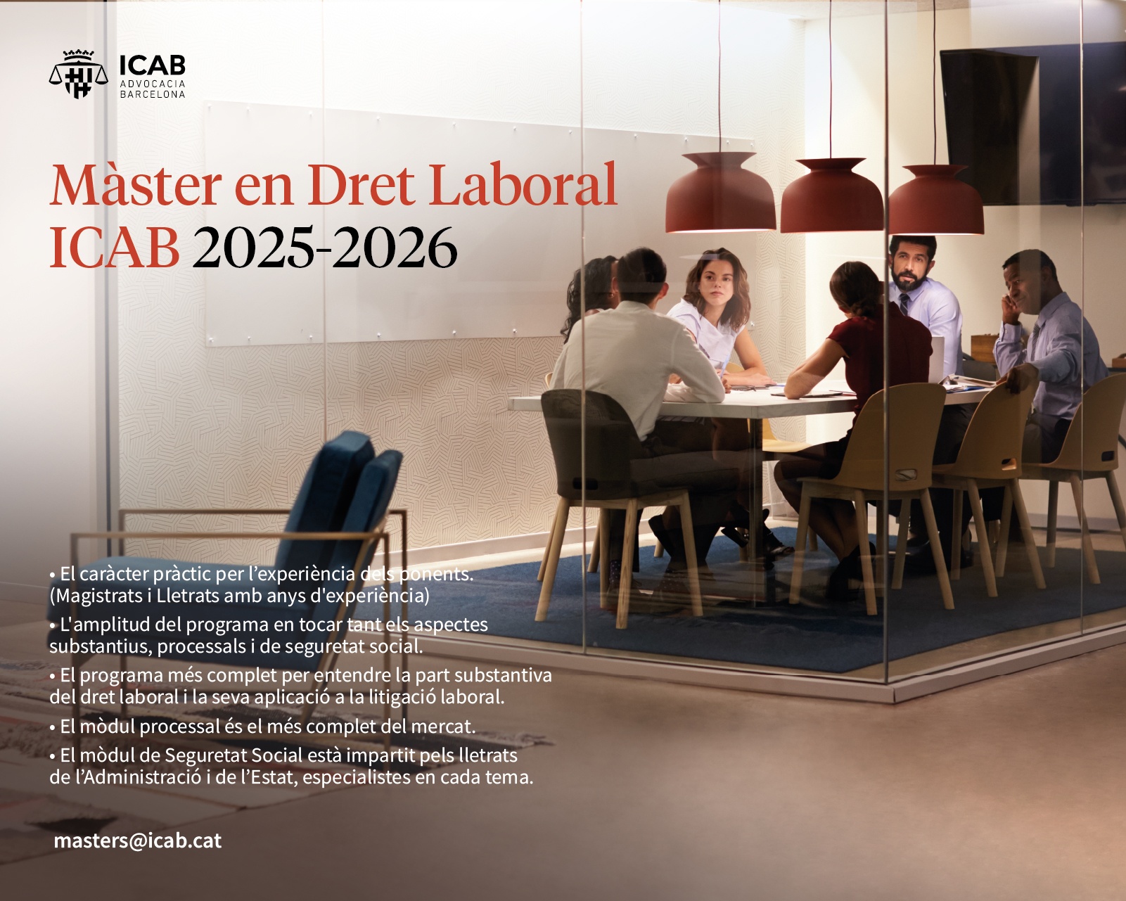 Máster ICAB de Especialización Jurídica Derecho Laboral y RRHH 2025-2026 (presencial y on-line)