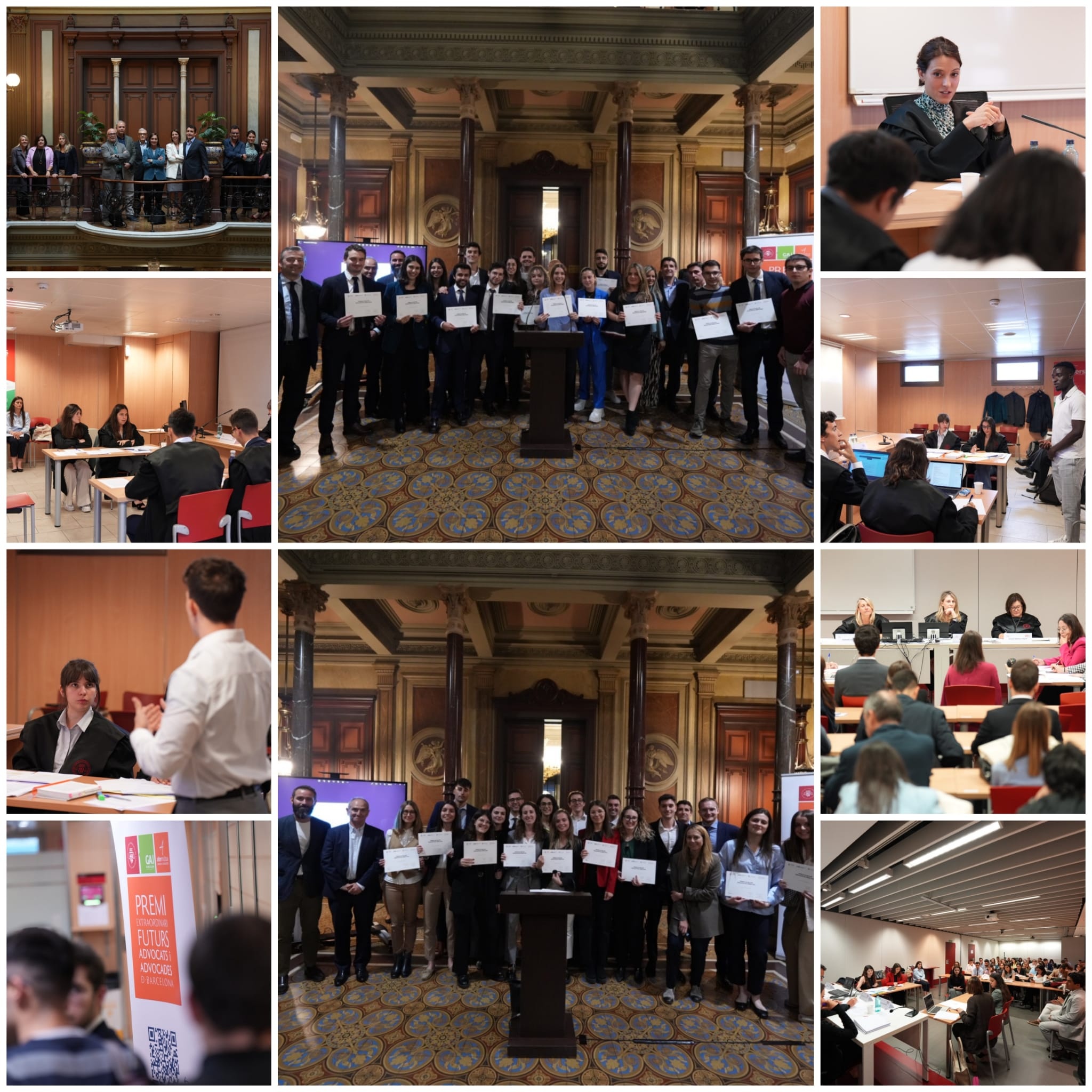 El triangular ha consistido en dos rondas de juicios simulados y una final, presididas por jueces en las áreas de Civil y Penal. Los alumnos y alumnas, que compiten por equipos -dos en modalidad de Civil y dos de Penal, integrados cada uno por entre 4 y 6 personas- han tenido la oportunidad de hacer el rol de abogado/a así como de testigos, peritos, Mossos, etc., mostrando sus capacidades y habilidades tanto de oratoria como de estrategia procesal.
